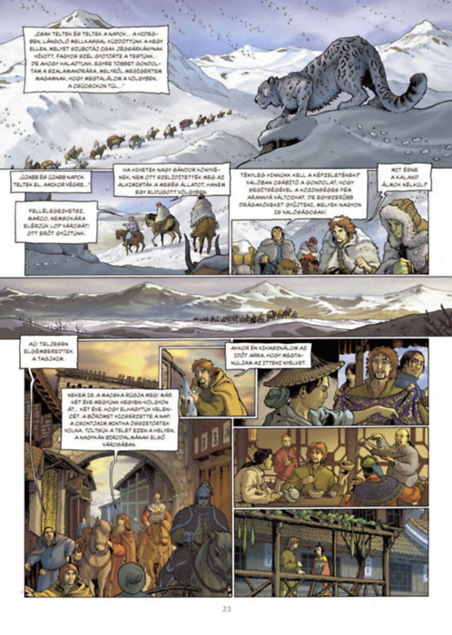 A képregény bemutatja a velencei Marco Polo kalandos utazását Kubiláj kán birodalmának fővárosába. Őt tartják minden idők legnagyobb utazójának. Jelentősége abban rejlik, hogy ő az egyik az első, aki részletesen és színesen számol be utazásáról.