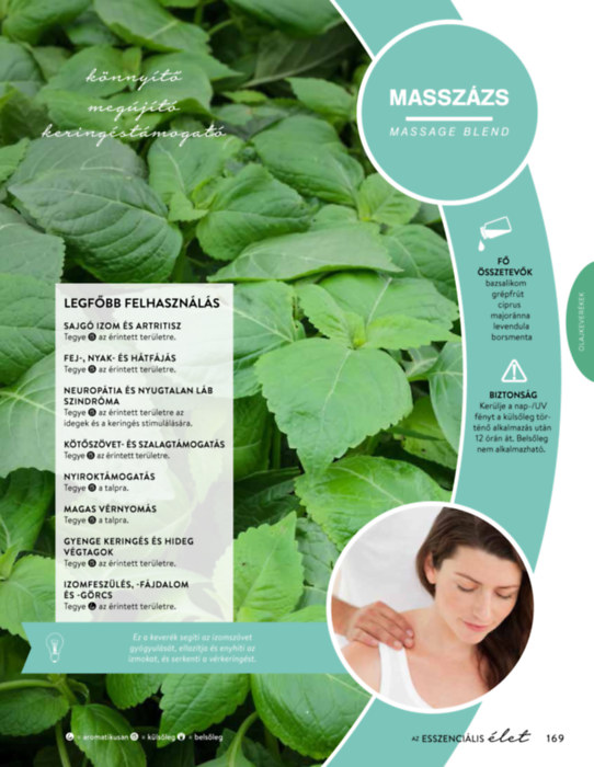 - A Természetes megoldások c. rész részletes leírást ad az egyes olajok és olajkeverékek eredetéről, tulajdonságairól, legfőbb felhasználási területeiről.