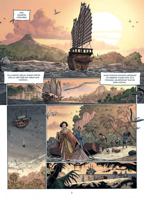 Képregényünk második részében az ifjú Marco Polo édesapjával és nagybátyjával együtt 1271-ben egy kalandos utazásra indul a mongol nagykán udvarába. Élje át velük együtt a veszélyes helyzeteket, az exotikus kultúrákkal való találkozást és a negyedszázaddal későbbi visszatérést, amely alapjaiban változtatta meg az emberek világképét. E kalandos utazás üzenete tovább él, és utazók új generációit inspirálja. Merüljön el a történetben, és fedezze fel a világot új szemszögből.