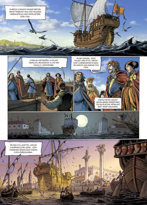 Kövesse figyelemmel Marco lépéseit, amint belép a Mongol Birodalom szívébe, ahol számos veszély fenyegeti, de egyúttal az exotikus kultúrával való izgalmas találkozásokat is átélhet. Tartson vele a több mint négy évig tartó hazaúton szülővárosába, Velencébe. Képregényünk felfedi a régmúlt egy olyan szeletét, amelyet máig rengeteg titok és megválaszolatlan kérdés övez.