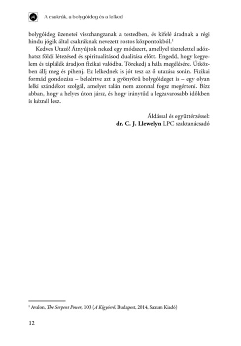 A szerző első, nagy sikerű A csakrák és a bolygóideg című könyve folytatásaként ez a kötet több mint negyven gyakorlatot tartalmaz. A meditációk, írásbeli feladatok és vizualizációk aktuális élethelyzetünkre reflektálnak, és megtanítják, hogyan értsük meg testünk belső üzeneteit, miként támogassuk annak működését, és milyen módon nyerjük vissza a lelkünkhöz való kapcsolódást. Segítségükkel megtapasztalhatjuk, hogy testünk kulcs a spirituális ébredéshez.