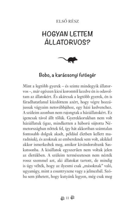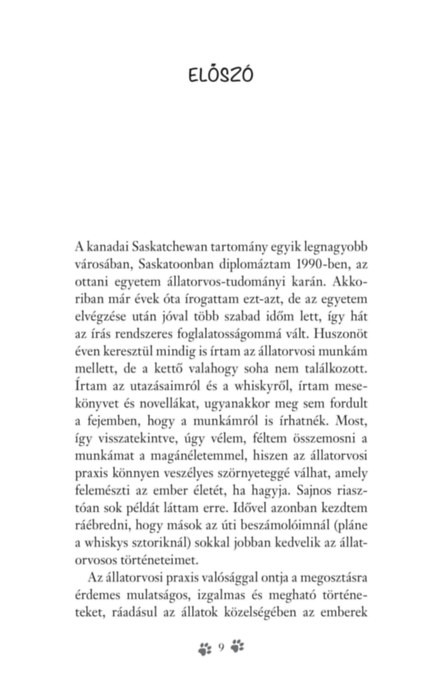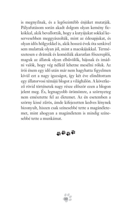 A kisállatrendelő színes mindennapjairól szóló kedves, szórakoztató történetek megnevettetik, elgondolkodtatják, vagy épp meghatják az olvasót, de senkit nem hagynak hidegen.