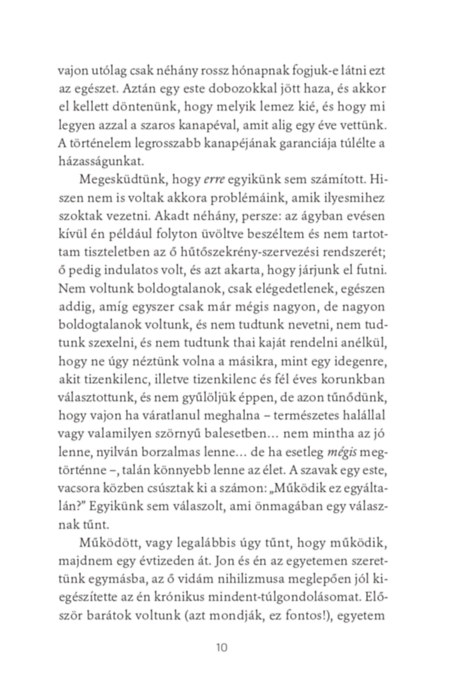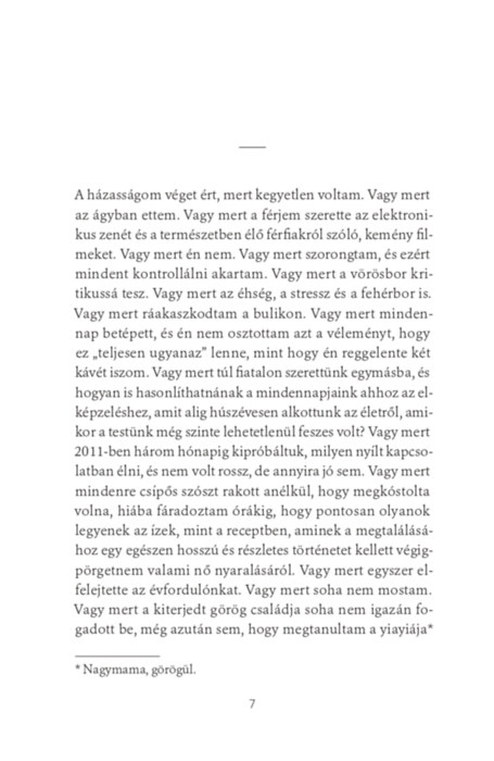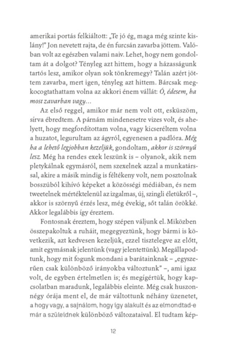 Zseniálisan, szórakoztatóan, hitelesen megirt regény, a válás szívszaggató története. Szabadszájú megfogalmazás, az elszakadás túlélése modern, 21. századi praktikákkal.