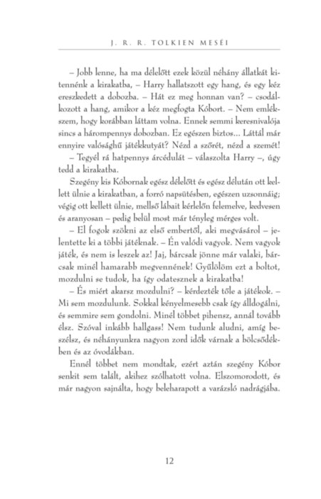 Tolkien meséi igazi bemelegítésnek számítanak, mielőtt elmerülnénk A Hobbit és A Gyűrűk Ura csodás-félelmetes világában, vagy éppenséggel kellemes levezetésül szolgálnak a nagyregények után, ha még nem tudunk és nem is szeretnénk elszakadni a tündék, sárkányok és varázslók birodalmától. A négy történet így, egy kötetben most először jelenik meg magyarul - ezúttal Peter Jackson Tolkien-filmjeinek Oscar-díjas rajzmestere, Alan Lee illusztrációival.