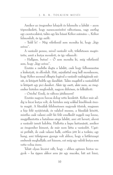 A nagy mesélő most újabb kalandokra hívja olvasóit. A Kóborló és a varázsló című írásban egy kiskutyának varázslók és hableányok közt kell megállnia a helyét, miközben az élete nemegyszer veszélyben forog. A Göncz Árpád tolmácsolásában megszólaló A sonkádi Egyed gazda mese egy távoli és varázslatos múltból, amelyben megismerhetjük a kissé lomha, ámde bátor Egyed gazdát, aki megfutamít egy óriást, majd az országra törő sárkányt is. Egyszerű ember a woottoni kovácsmester, mégis Tündérországba jut, a filozofikus hangvételű A levél című történetben pedig Niggle, a festő veszi a nyakába a világot, hogy megtalálja és lefesse a tökéletes fát. Egytől-egyig sziporkázó írások, és talán az sem véletlen, ha bájtalanított hétköznapjaink alakjaira és helyzeteire emlékeztetnek bennünket.