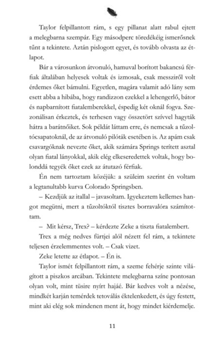 Falyn, a leendő colorádói kormányzó lánya. Így minden, amit tesz, hatással van apja karrierjére. Ám legnagyobb igyekezete ellenére sem képes megfelelni az elvárásoknak. Nem tud szabadulni egy fiatalkori hibájának terhétől. Pincérkedést vállalva a Bucksaw Kávézóban, és minden műszak után félretesz egy kevés pénzt, hogy repülőjegyet vehessen, és végre elutazhasson Eakinsben, ahol talán helyrehozhatja a múltját.