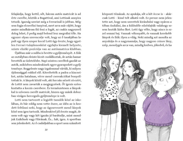 Lotti vidám, barátkozó kislány, aki szinte mindenkivel jóban van az osztályban. De néhány lány mostanában egészen furcsán viselkedik: sugdolóznak, titkolóznak, és Lotti úgy érzi, hogy már nem olyan kedvesek, mint régen. Aztán talál egy füzetet, amiben a lányok gúnyrajzai sorakoznak az osztálytársakról - többek között róla is. Lotti megdöbben, és nagyon elszomorodik. Vajon tényleg baj van a külsejével? Talán nem is alkalmas a tündér szerepére az iskolai színdarabban? Érdemes egyáltalán jelentkeznie? Lehet, hogy csak kinevetnék...