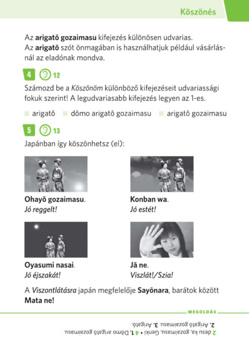 - 130 letölthető hangfájl segítségével gyakorolhatod a japán nyelv megértését és a kiejtését.