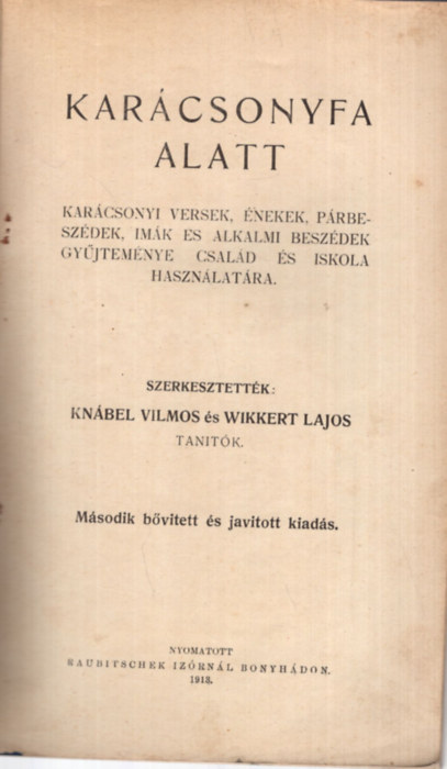 Karácsonyfa alatt - Karácsonyi versek, énekek, párbeszédek, imák és alkalmi beszédek gyűjteménye család és iskola használatára (1913)