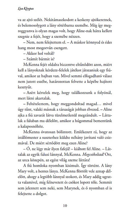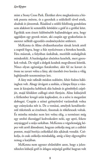 Remek történelmi romantikus. Aline lelki ereje példaértékű, McKenna pedig szép jellemfejlődésen megy keresztül történet végére.