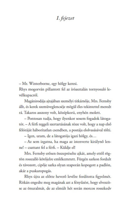 Helennek eddig vajmi kevés kapcsolata volt a londoni társaság csillogó, cinikus világával. Rhys eltökélt csábító hadjáratának következtében fellobban köztük a heves és kölcsönös szenvedély lángja. Helen előkelő neveltetésére rácáfol az a makacs meggyőződése, miszerint egyedül ő képes megzaboláznia féktelen férjét. Rhys egy ellenlábasának cselszövése olyan helyzetet idéz elő, melyben Helennek fel kellene tárnia a férfi előtt legsötétebb titkát. Ez óriási kockázatot jelent… ám a jutalom egy életen át tartó, semmihez sem fogható boldogság. Történetük úgy kezdődik, hogy…
