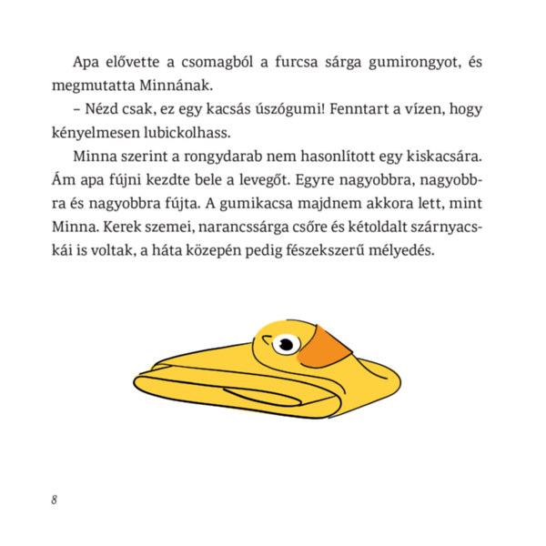 A kötet két meséjéből kiderül, hogyan lesz a sárga gumirongyból délceg mentőkacsa, és az is, hogy mi a legjobb a nyári záporban.