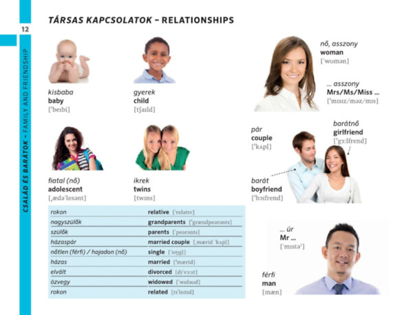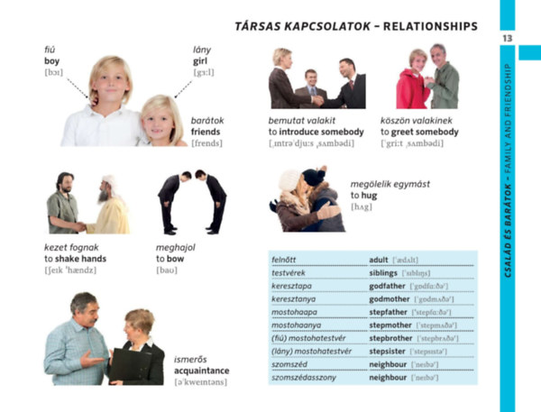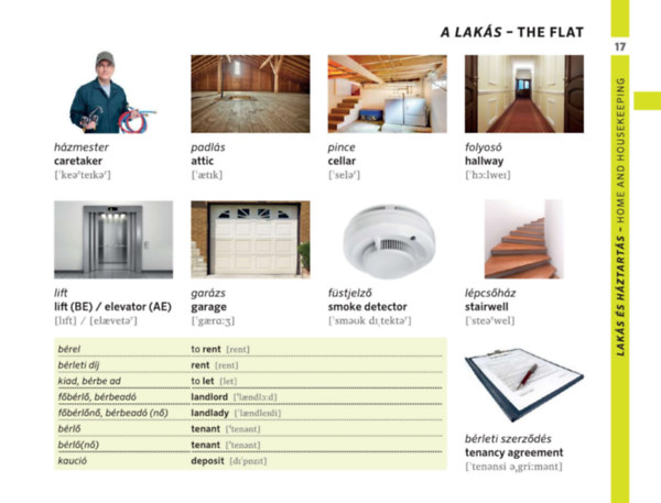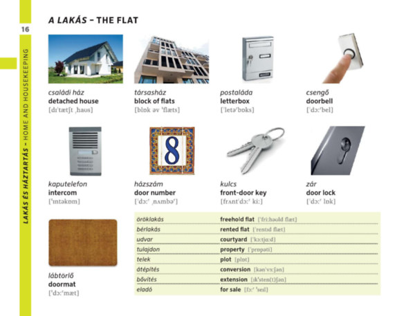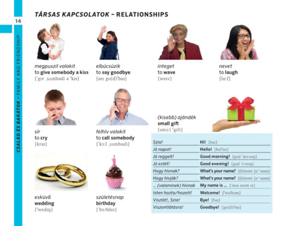 Az egyszerű szó-kép megfeleltetés mellett helyet kaptak az egyes szituációkban leggyakrabban használatos mondatok is.