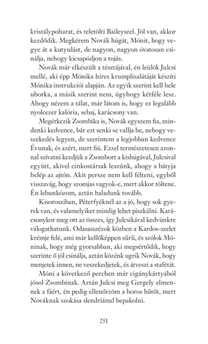 Imádtam. Szeretem a szerzők stílusát, jól eltaláltak a történetek, jókat nevettem, sokszor elgondolkodtatott, vannak részek, amiken az elolvasás óta kattog néha az agyam. A receptek egy részét is biztosan ki fogom próbálni. Éhesen ne olvassa senki!