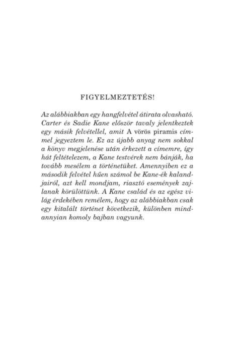 Az ókori Egyiptom istenei rászabadultak a mai világra, és azóta Carter Kane és a húga, Sadie komoly bajba került. Az Élet Házának leszármazottaiként a Kane testvérek rendelkeznek bizonyos képességekkel.