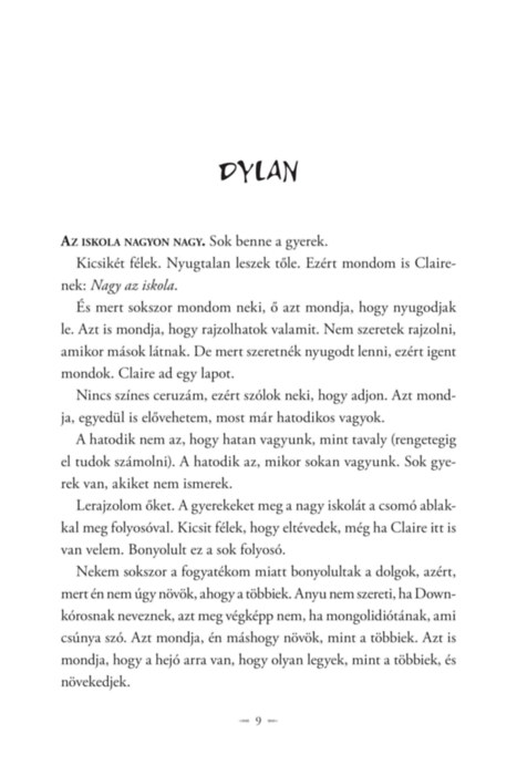 - Azt mondtam neki, hogy ezer okból lehet szeretni vagy tisztelni a fogyatékosokat, de csak azért semmiképpen sem, mert fogyatékosok. Lehetünk például viccesek, helyes srácok, konyhaművészek, jó fejek. De lehetünk síkhülyék is. Síkhülyék, mint bárki más. Se jobban, se kevésbé. Szóval megfelelő okból tiszteljen bennünket, igazgató úr. Na, hát ezt mondtam Flachard-nak. Úgy nagy vonalakban."