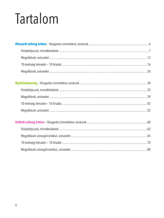 - A tematikus feladatok révén célzott gyakorlást biztosít az érettségi tíz fő témakörében