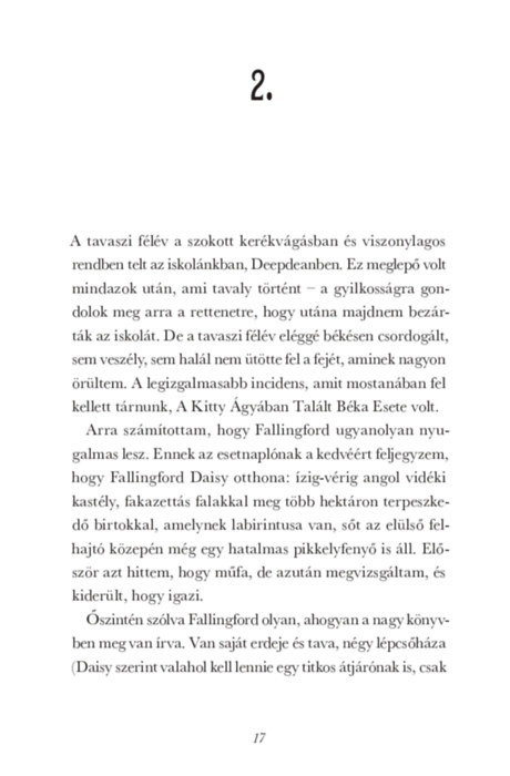 A Deepdean Leányiskola KÉT NYOMOZÓJA, Daisy Wells és Hazel Wong a szünidőt Fallingfordban tölti, ahol Daisy elbűvölő édesanyja ünnepi zsúrt szervez lánya születésnapjára. A meghívott vendégek között van a kissé bogaras Saskia néni és a lenyűgöző stílusú Félix bácsi is. Ünneplés közben azonban valaki MEGHAL, és minden jel arra utal, hogy MEGMÉRGEZTÉK! Kint ítéletidő tombol, szakad az eső, mindent elönt a víz, így a házat senki nem tudja elhagyni - és a rendőrség sem tudja megközelíteni a bűntett színhelyét. Az ódon kastélyban egyre feszültebb a légkör. Senki sem az, akinek látszik, és MINDENKI REJTEGET EGY-KÉT TITKOT. Daisy és Hazel nyomozásba kezdenek, de nagyon óvatosnak kell lenniük, hiszen a gyilkos egészen biztosan a házban van! 10+