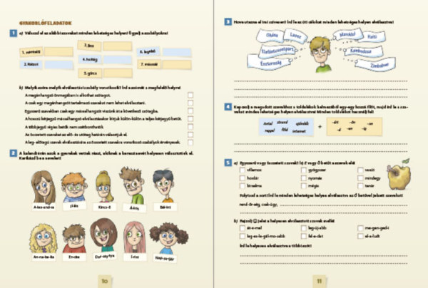 Az új gyakorlósorozat kiváló segítséget nyújthat az általános iskolai helyesírási ismeretek elsajátításában. A kötetek hasonló módon épülnek fel: a rövid, érthető szabályismertetők után változatos feladatok adnak lehetőséget a gyakorlásra és az elmélyítésre. Törekedtünk arra, hogy unalmas feladatsorok helyett sokféle, érdekes feladattípussal találkozzanak a gyerekek a munkafüzetekben. Vidámságot csempésznek a munkába a feladatokhoz kapcsolódó szórakoztató illusztrációk. A kötetek a tanórai használat mellett az otthoni, önálló gyakorlásra is alkalmasak, hiszen a megoldások ingyenesen elérhetők a kiadvány digitális változatában, lehetőséget nyújtva az önellenőrzésre.