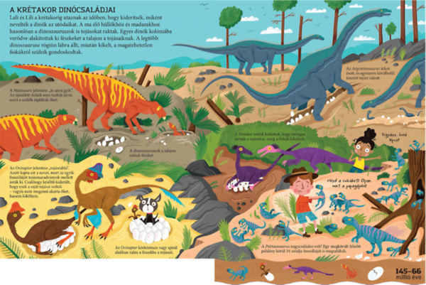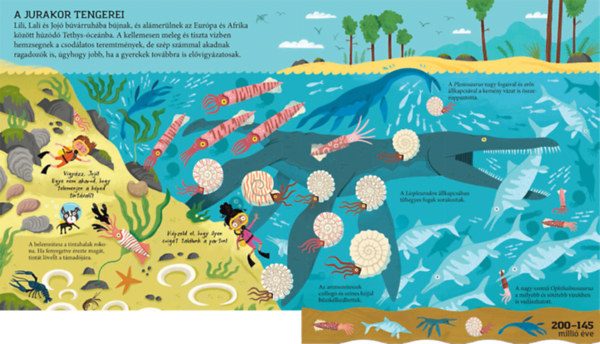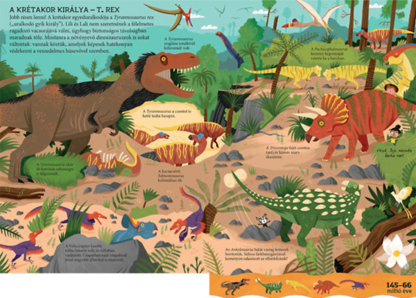 Lili és Lali Jojó kutyával együtt kalandoznak a dinoszauruszok korában. Csatlakozz hozzájuk! Járd be velük a triász, a jura és a kréta korszakot, kövesd a dinoszauruszok történetét a megjelenésüktől a kihalásukig. Ismerd meg a Földet egykor benépesítő csodálatos élőlényeket! Hogyan gondoskodtak a dinoszauruszok a fiókáikról? Mikor uralta a világot a rettentő Tyrannosaurus? Honnan tudjuk, milyenek voltak és hogyan éltek a dinoszauruszok?