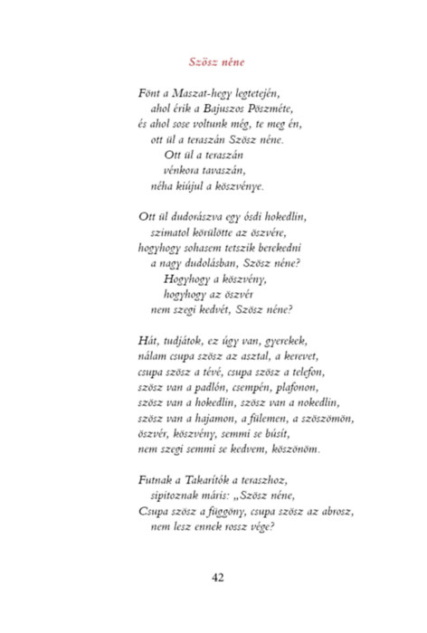 dudorászik a teraszon Szösz néne: