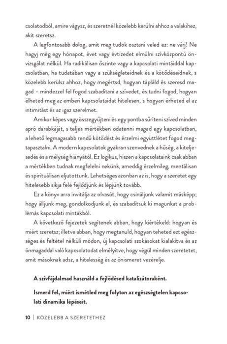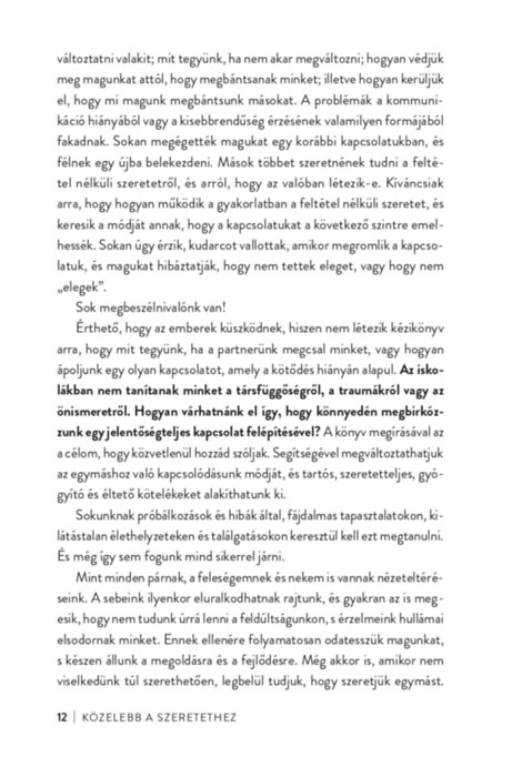 Ez a könyv felhívás arra, hogy valamit csináljunk máshogy; álljunk meg, gondolkodjunk el, és szabadítsuk ki magunkat a problémás kapcsolati mintákból.