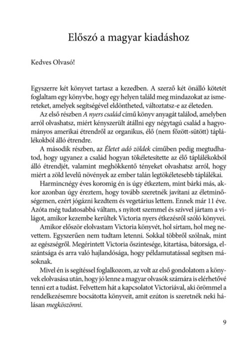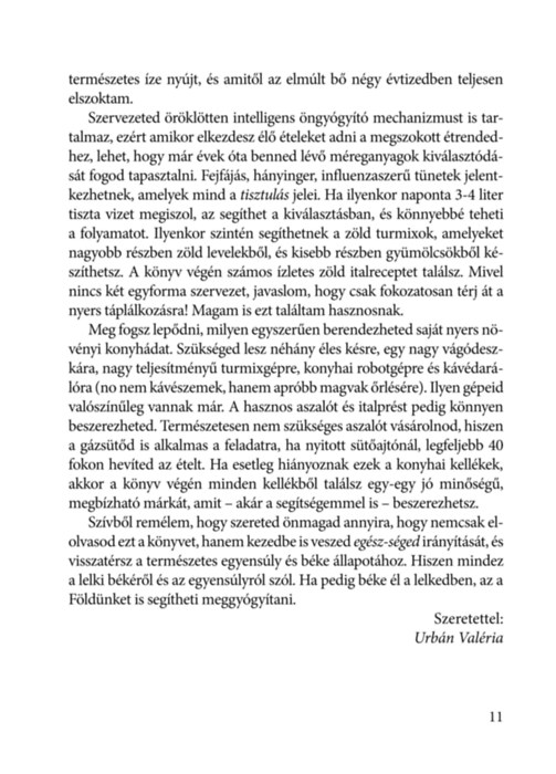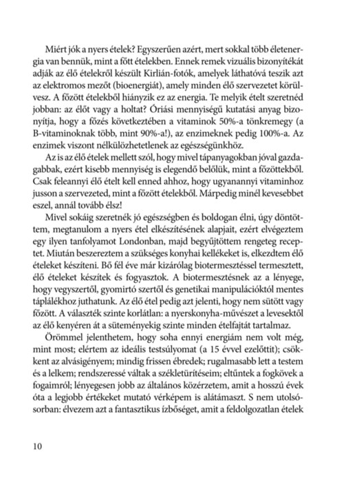 Számtalan betegség abból fakad, hogy eltértünk a természetes életmódtól. Étrendünk nagy részét olyan ételek teszik ki, amelyek nem találhatók meg a természetben. Az ember az egyetlen élőlény a Földön, amely tönkreteszi a táplálékát, mielőtt elfogyasztaná. A sütés és a főzés emberi találmány, amelynek elsősorban kulturális és gasztronómiai szempontból van jelentősége, de a testünk továbbra is a friss, élő és átalakítatlan növényi ételeknek örül a legjobban. A hőkezelés sok értékes anyagot vitaminokat, enzimeket stb. elpusztít az ételben. Ha törekszünk arra, hogy étrendünk minél nagyobb részét a nyersen fogyasztott növényi ételek tegyék ki, azzal jelentős lépést teszünk az egészségünk megtartása és a betegségek megelőzése terén. Ne feledjük azonban, hogy az egészséges táplálkozás nem a cél, hanem értékes eszköz a szabadság és a szeretet útján. - Váradi Tibor